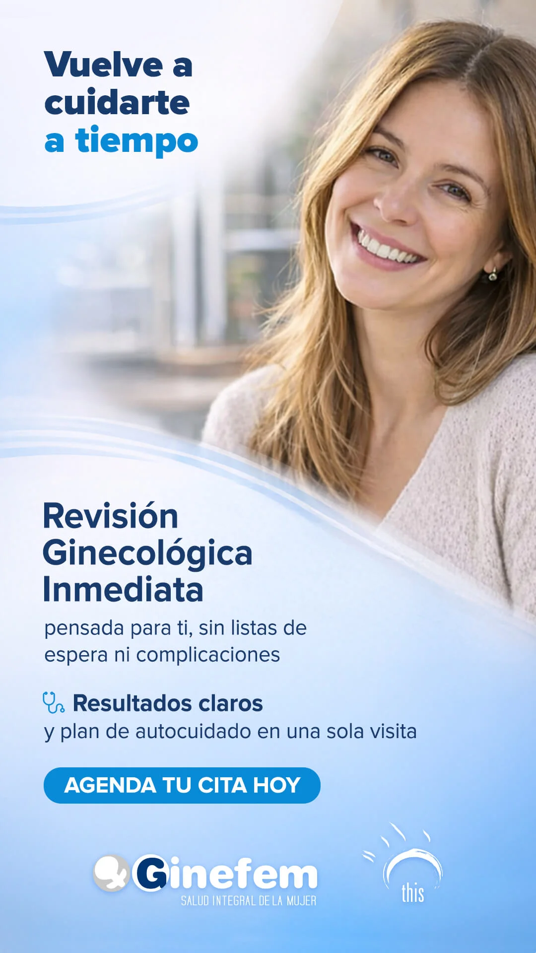 En GINEFEM, te ofrecemos la posibilidad de realizar tu Revisión Ginecológica Inmediata sin listas de espera, adaptada a tus necesidades, edad y etapa vital. Cuidar de ti es urgente, y también muy fácil.